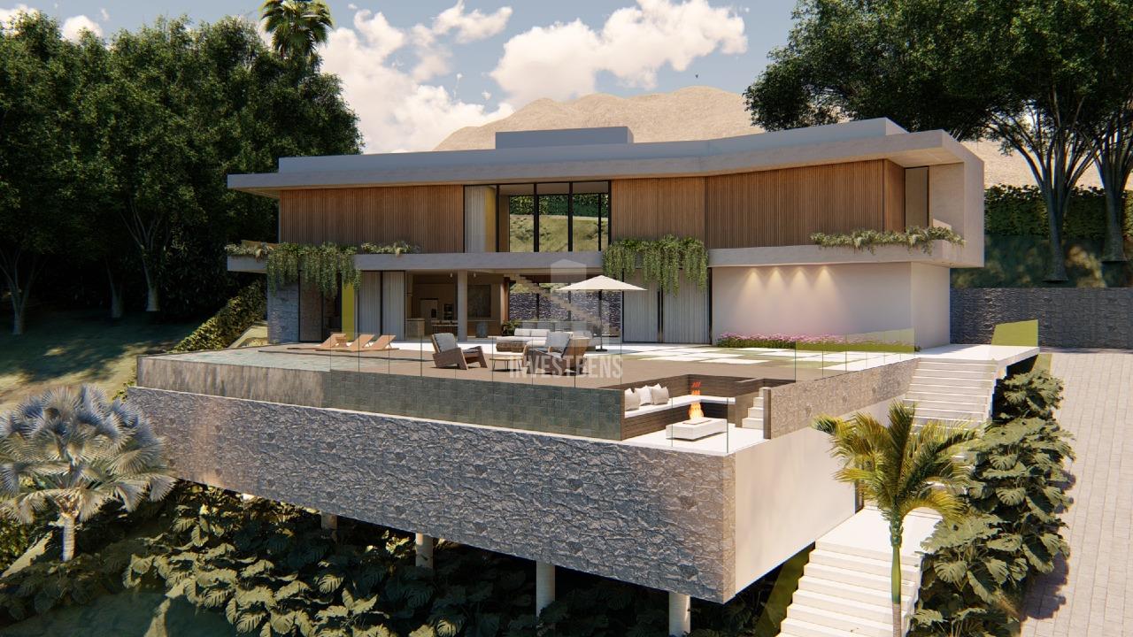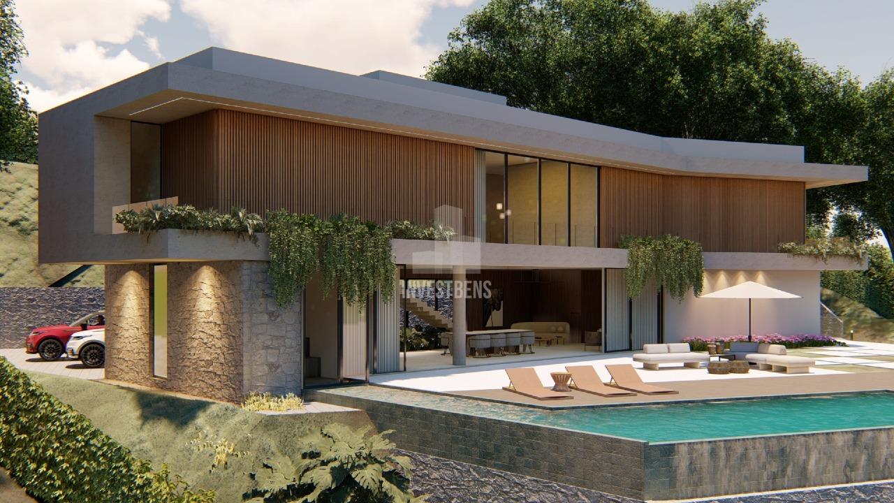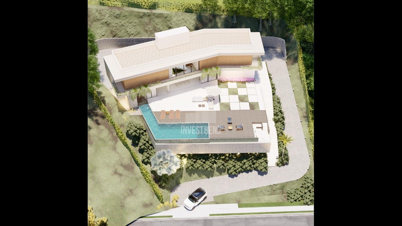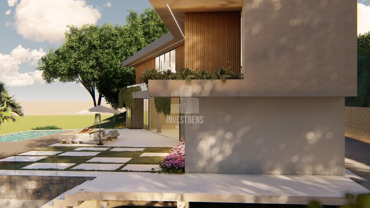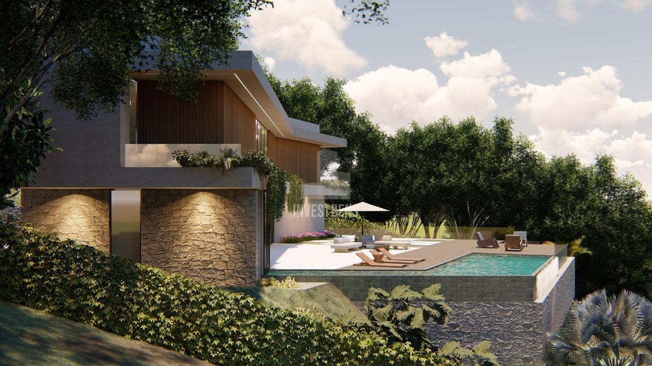 Condomínio com casas em estilo moderno, vista de mirante para a Mata do Jambreiro.